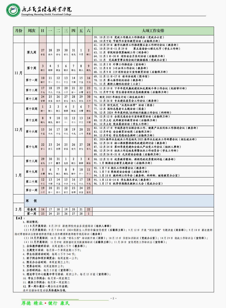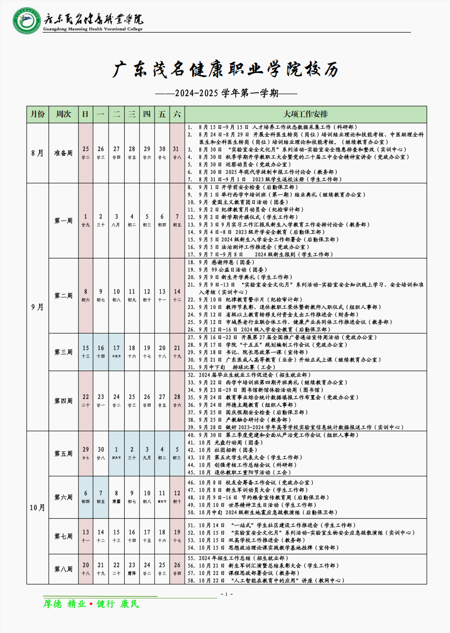2024-2025学年第一学期校历