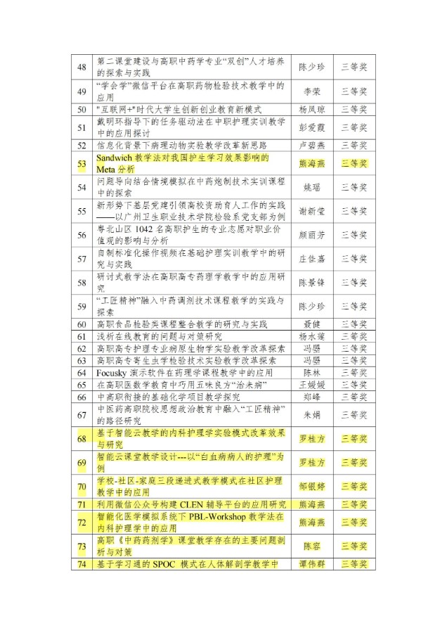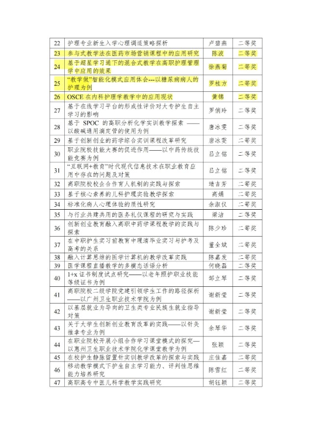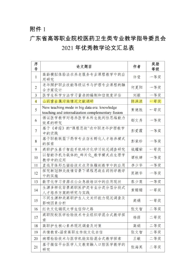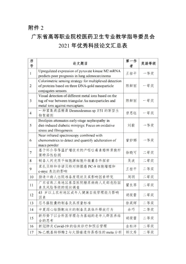 关于公布广东省高等职业院校医药卫生类专业教学指导委员会2021年度优秀论文的通知