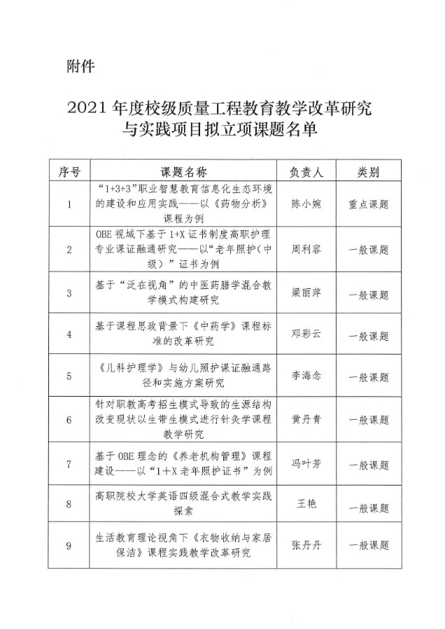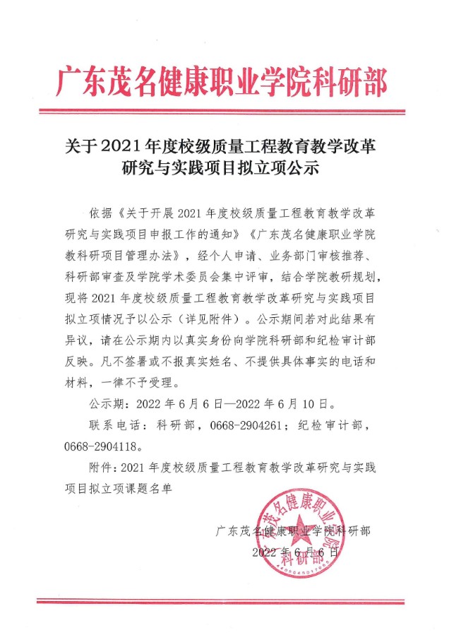 关于2021年度校级质量工程教育教学改革研究与实践项目拟立项公示
