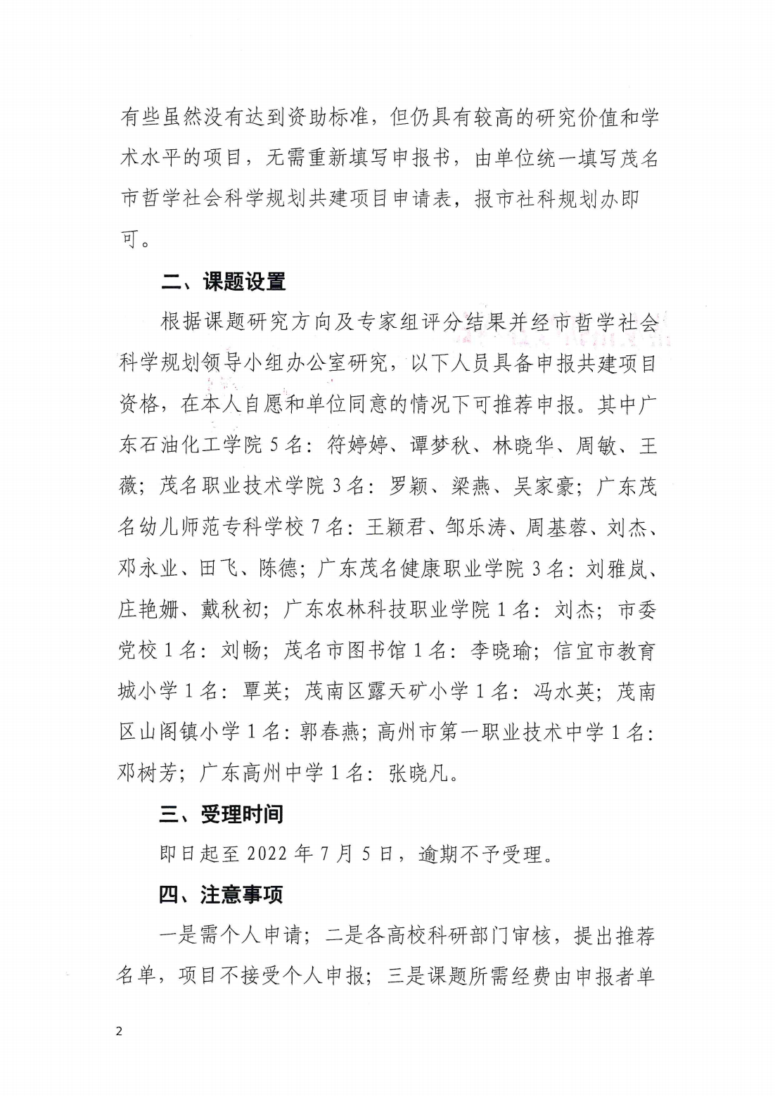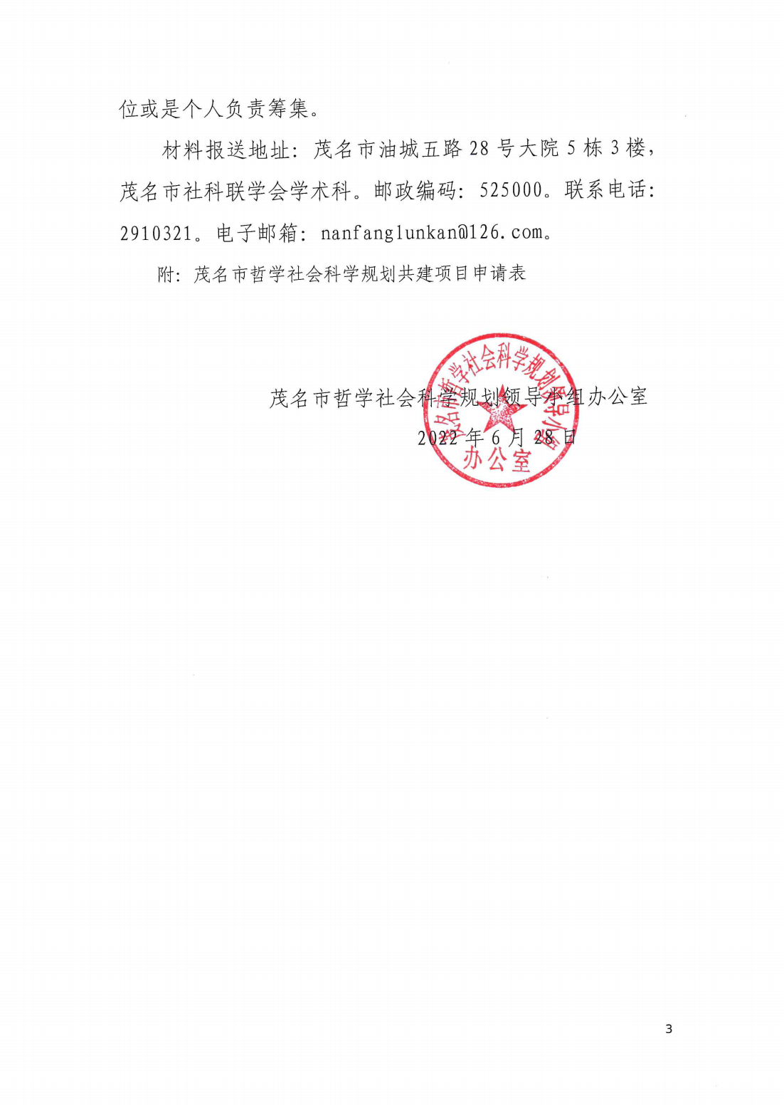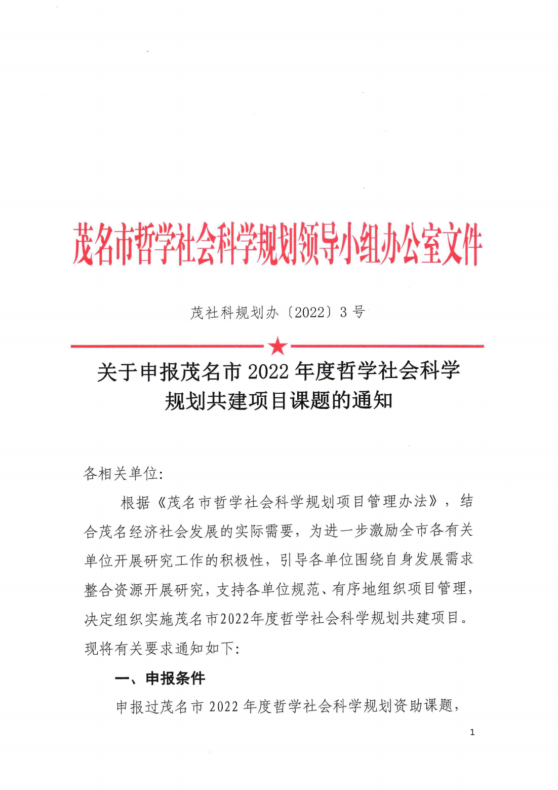 关于申报茂名市2022年度哲学社会科学规划共建项目课题的通知(转)