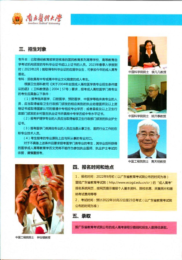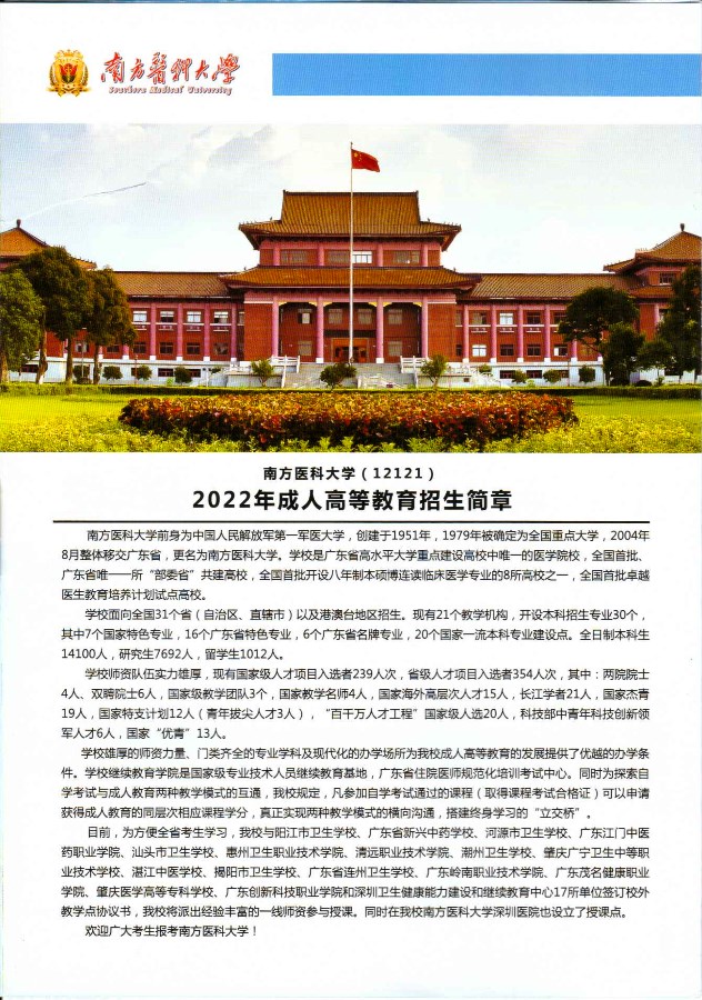 南方医科大学2022年成人高等教育茂名教学点招生简章