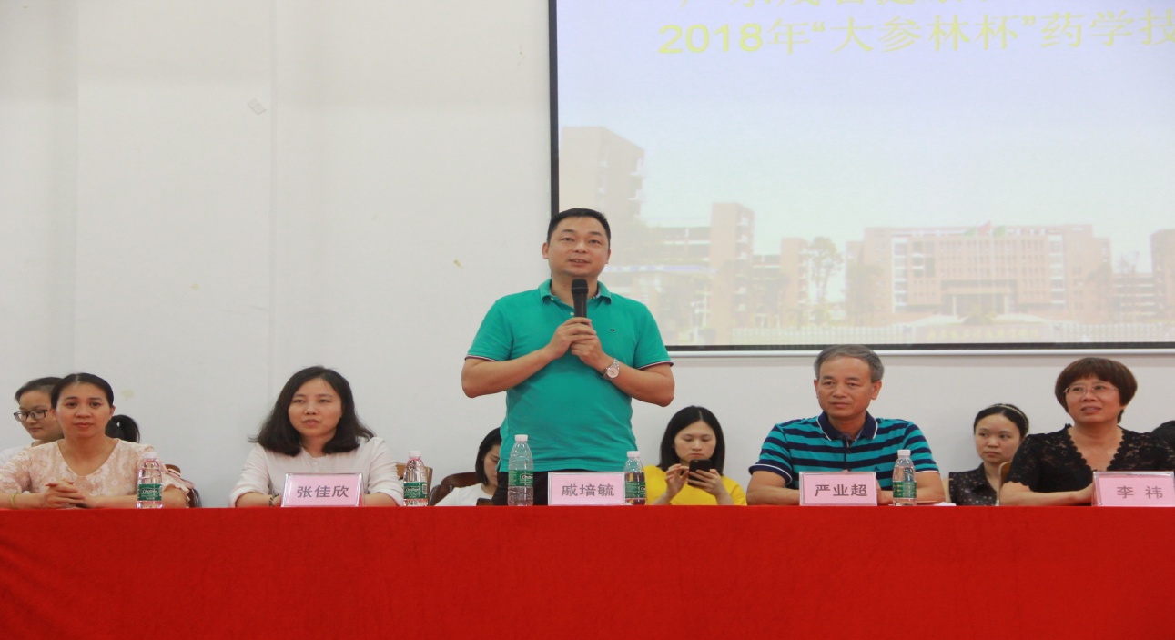 技能成就梦想,匠心铸造未来。由我院药学系组织,大参林医药集团股份有限公司赞助,校企合作联合举办的2018年首届“大参林”杯药学技能竞赛决赛于2018年6月5日隆重举行。参加本次比赛开幕式的有严业超副校长、李祎科长等学院领导和药学系的专业老师、大参林医药集团股份有限公司粤西大区戚培毓总经理、张佳欣人事经理等。