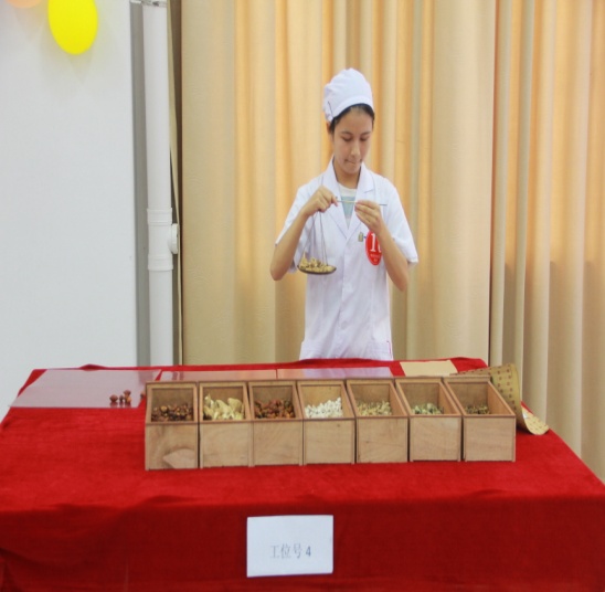 本次比赛参赛的队伍有来自16级、17级高职、中职的药学、中药学、药剂专业共29个班派出共300多位选手参赛,比赛项目共有四项:中药传统技能大赛,药品调剂技能比赛,药品营销技能比赛和医药商品手绘POP海报比赛。比赛分为两个赛场,中药技能比赛和药品调剂大赛在图书馆七楼学术报告厅进行,药品营销大赛在大参林模拟药房进行,医药商品手绘POP海报大赛在上周已完成筛选,优秀作品在本会场展示。