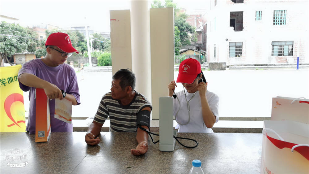 本次资助政策下乡行活动结合学院的专业实际情况,通过一系列的医学义诊活动和医学常识的宣传 ,在送健康给村民的过程中宣传国家助学政策,让村民在感动和温暖的氛围中了解国家资助政策。一方面,在量血压的义诊活动中,学生把高血压和低血压患者需要注意的事项和饮食调理的方法告知村民。有位常年受高血压折磨的村民,还被学生耐心和热心的行动感动哭了。另一方面,常年在田地劳作的农民,普遍有颈椎病和腰椎病,康复治疗按摩义诊活动使村民颈部、腰部和肩膀的肌肉得到放松,同时让村民有了保健意识。有位常年腰椎和腿部疼痛的老奶奶,在学生的按摩后,直夸学生技术好,心地善良。第二天,这位老奶奶还专程找到助力圆梦先锋队的队员,送上自己家的番石榴,表达自己的感激之情。量血压和康复治疗的义诊活动受到村民的一致认可和好评,在得到村民认可后,助力圆梦先锋队的成员及时把国家资助政策告知村民,让村民感知来自党和政府的关心,有村民感慨地说:“国家对困难家庭很关照,贫困家庭的优秀学生再也不用像以前那样因没钱交学费而失去读书的机会了,这真好!”。