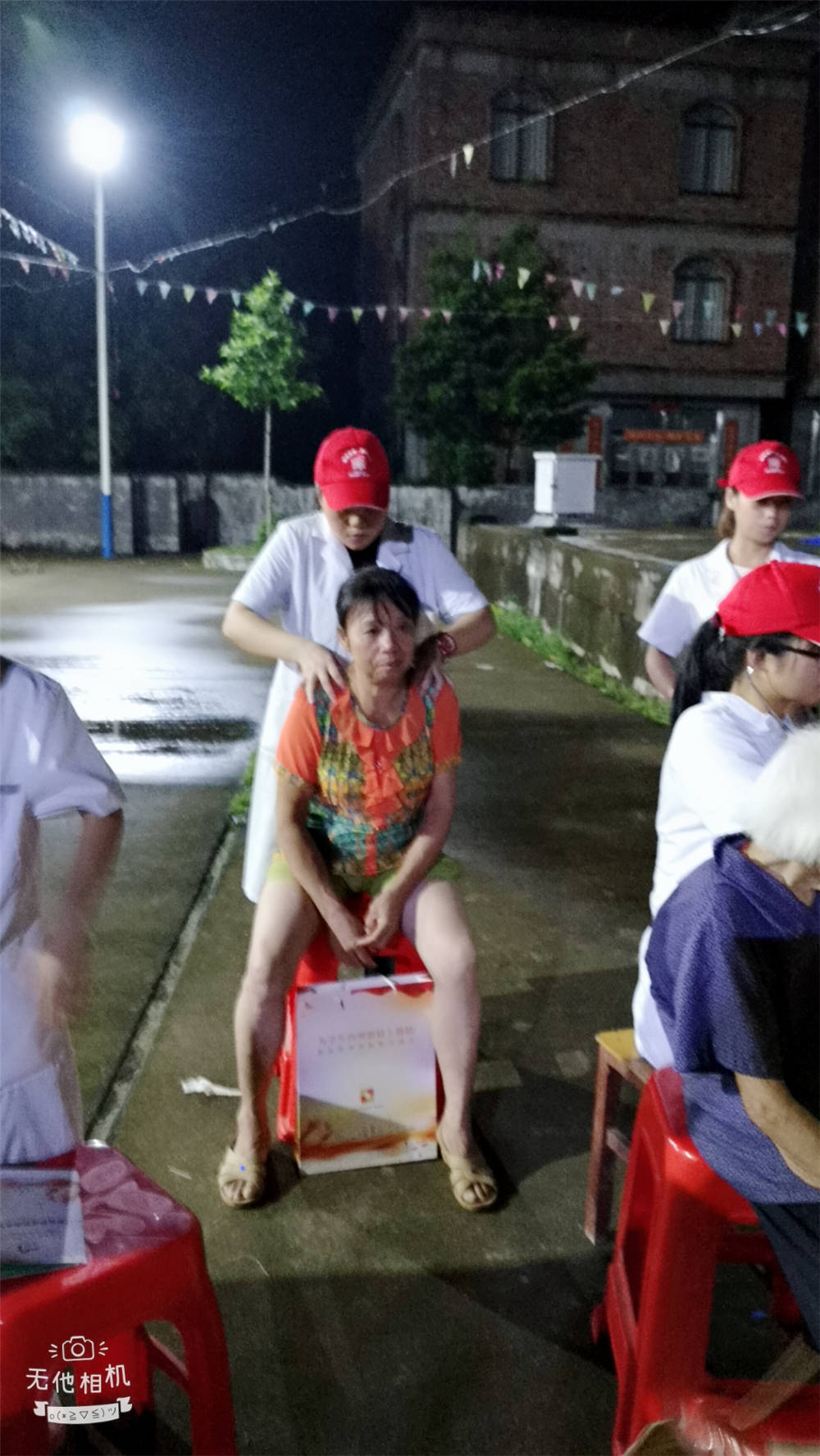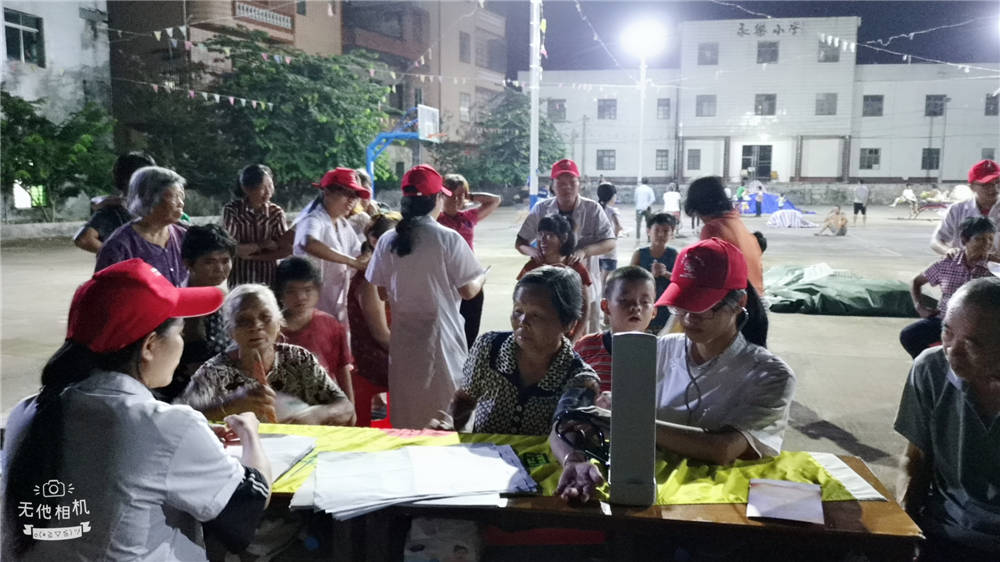 在村委会操场摆摊进行义诊活动宣传国家资助政策