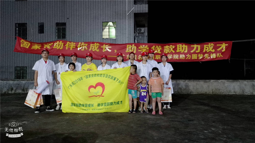 为全面贯彻党的十九大精神,宣传国家资助政策,不让学生因家庭经济困难而失学。我校积极响应广东省教育厅、国家开发银行广东省分行联合主办的“国家资助和助学贷款政策下乡行”活动号召,组建省级立项队伍----助力圆梦先锋队,于8月1日赴茂名市电白区霞洞镇永乐村开展国家资助政策下乡行活动。