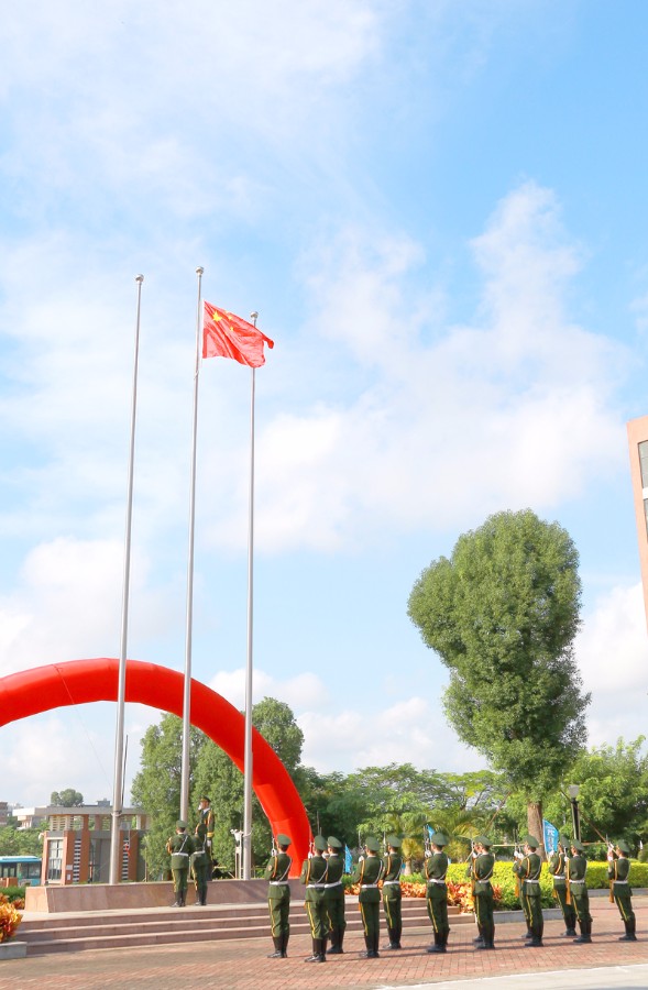 (图为国旗护卫队正在进行开学典礼升旗仪式)