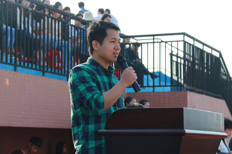 (图为我院党委书记余义才同志宣布校园会开幕)