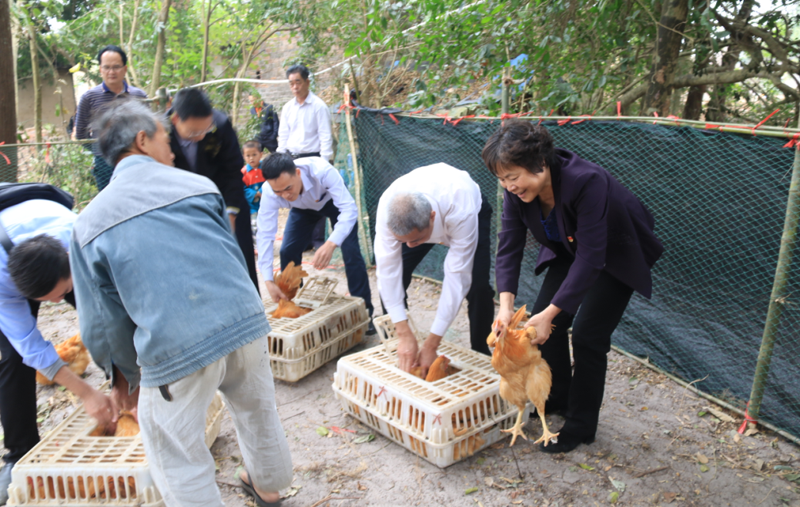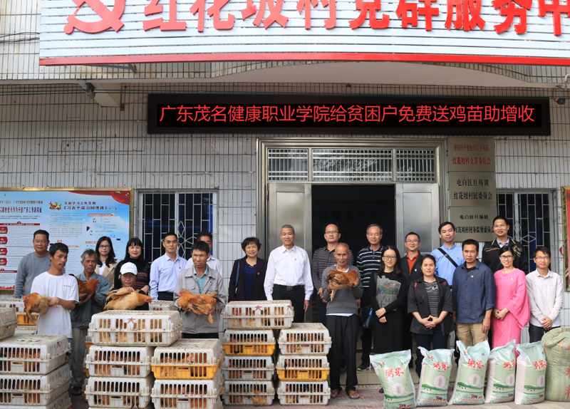 为深入学习贯彻习近平新时代中国特色社会主义思想、巩固“不忘初心、牢记使命”主题教育成效,12月23日下午,beat365中国唯一官方网站党委书记余义才、院长梁德萍一行在电白区旦场镇副镇长黄永泽的陪同下,深入电白区旦场镇红花坡村调研精准扶贫工作,为贫困户送上2.4万元鸡苗。