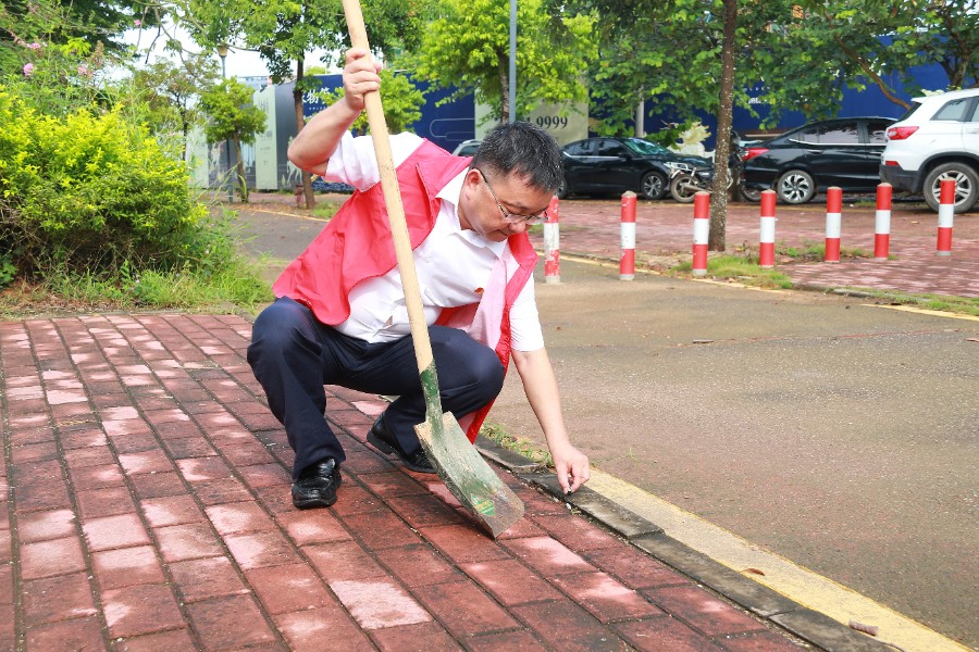 活动中,余义才书记、梁德萍院长率先垂范,手持清洁工具,带领创卫队伍迅速投入到校园周边的创卫中去。志愿者们尽心尽责,将校园周边的杂草、烟头、落叶等清扫干净,为广大师生创建一个干净整洁的学习环境。