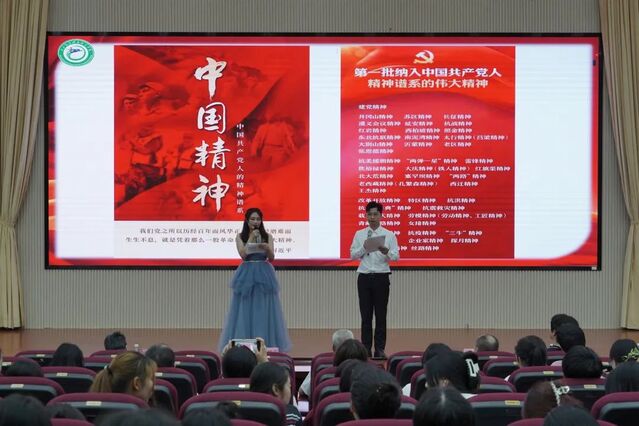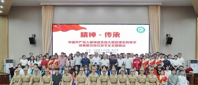 为深入贯彻落实习近平新时代中国特色社会主义思想和党的二十大精神,弘扬以伟大建党精神为源头的精神谱系,切实贯彻“大思政课”理念,激励学生做中国共产党人精神的学习者、践行者和弘扬者。2023年6月15日,beat365中国唯一官方网站马克思主义学院和药学系在学术报告厅联合举办了《精神‧传承——中国共产党人精神谱系融入思政课实践教学成果展示暨红色主题文化晚会》。学院党委书记余义才,党委专职副书记付四伟、纪委书记谢为宇,党委委员、党委宣传部部长谭伟群,马克思主义学院、药学系500余名师生共同观看了这场红色盛宴。