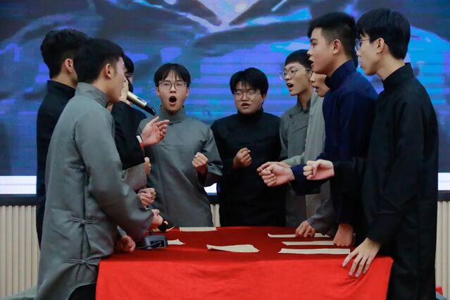 《夺冠》聚焦中国女排的故事。同学们用青春和汗水演绎了“祖国至上、团结协作、顽强拼搏、永不言败”的女排精神。这个节目融合了视频演绎、歌曲唱颂、现场练习等多种形式,让观众赏心悦目、拍手称赞。