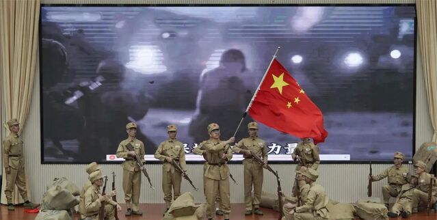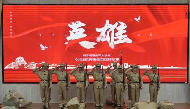 第二篇章主要展现社会主义革命和建设时期产生的抗美援朝精神、“两弹一星”精神。情景剧《英雄》再现了抗美援朝英雄们“打得一拳开,免得百拳来”的气概。同学们演绎了黄继光不立功不下战场的一封家书、舍身堵枪眼的英雄壮举……