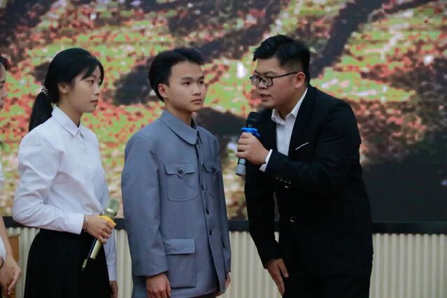 紧接着《长征》节目映入眼帘。红军不怕远征难,万水千山只等闲,先辈们用他们的鲜血,谱写了万里长征这一惊天动地的革命壮举。“什么是共产党?共产党就是自己有一条被子,也要剪下半条给老百姓的人。”同学们声情并茂演绎了《半条棉被》的感人故事,师生们在《十送红军》的合唱中领悟了长征精神的深刻含义。