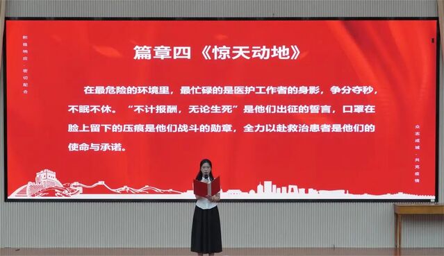 最后一个篇章是《惊天动地》,主要讲述进入新时代以来产生的抗疫精神和丝路精神的故事。情景剧《使命》带我们领略0804疫情志愿者风采,听他们诠释什么是使命……