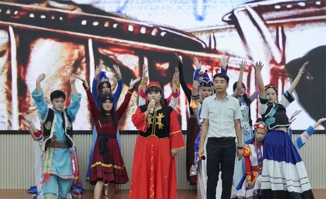 《丝路》用多种形式演绎“志合者,不以山海为远”的精神。药学系副主任于海帅和维吾尔族学生阿依不拉克合唱,药学系少数民族学生辅以沙画呈现丝绸之路的“美美与共”。