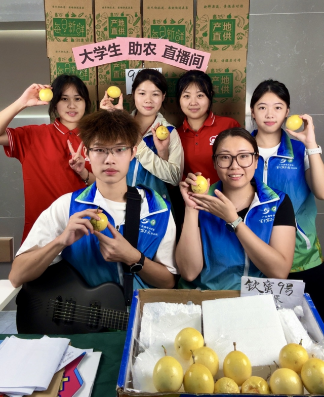 在鳌头镇飞马村的直播间,学子化身热情主播。“真没想到,大学生两小时就帮我们卖掉了200多斤百香果!”果农郑叔看着不断跳出的订单惊喜不已。师生深入田间,走进茂名大米数字化服务中心,运用电商技能为特色农产品插上“云翅膀”,打通从农场到餐桌的富农新路径。